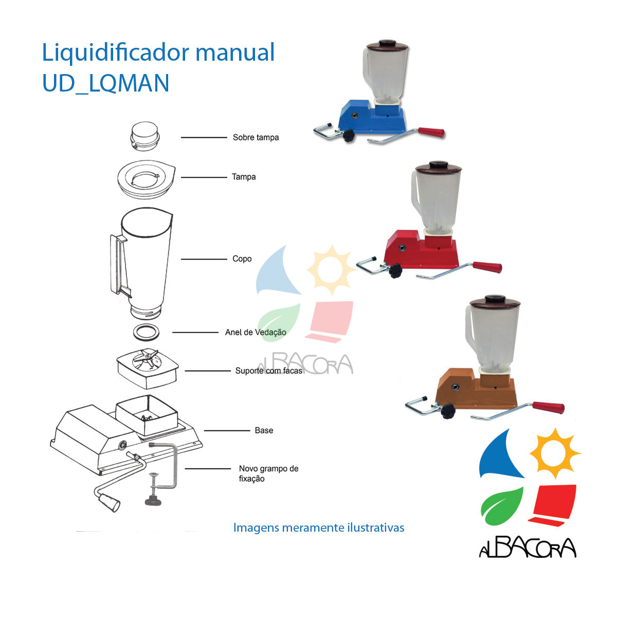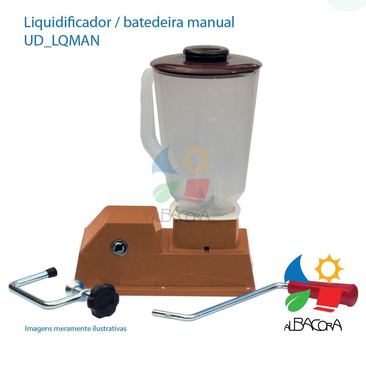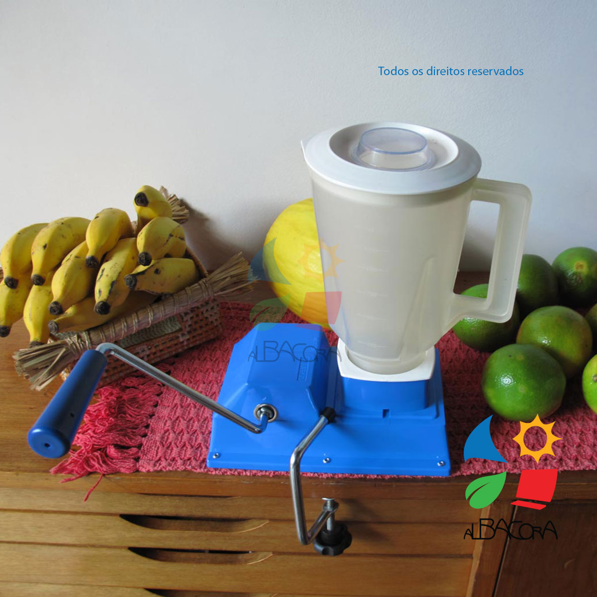 Há alguns anos conhecemos o senhor Luigi Cavaliere da empresa Universo do Artesanato que fabrica um liquidificador manual, movido a manivela. Parece um liquidificador comum mas funciona a base de manivela. Vendemos dezenas destes aparelhos para os caiçaras da região de Paraty e mais algumas centenas para o Brasil todo. Utilizado em campings, barraquinhas de rua de sucos, sorvetes, raspadinhas, o liquidificador manual se mostra uma excelente opção para triturar e processar alimentos.